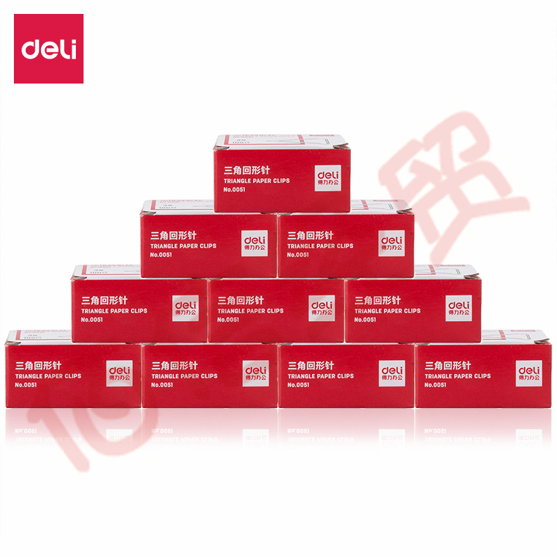 得力(deli)3#鍍鎳三角回形針 29mm金屬曲別針 100枚/盒 10盒裝 辦公用品 0051 自營