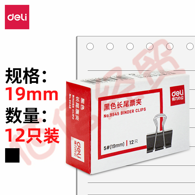得力(deli)19mm金屬黑色長尾夾/票據(jù)夾/燕尾夾/票據(jù)夾子/文件夾 12只/盒 辦公用品 9545 自營