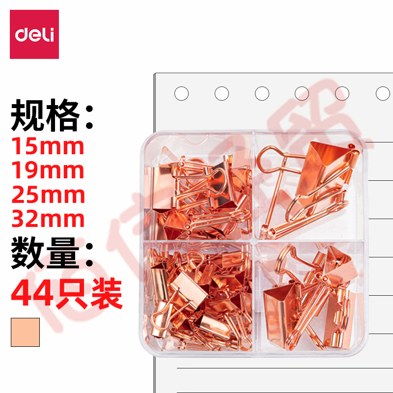 得力(deli)44只組合裝玫瑰金長尾夾/燕尾夾/票夾/文件夾(32mm*2只+25mm*5只+19mm*12只+15mm*25只) 78205 自營
