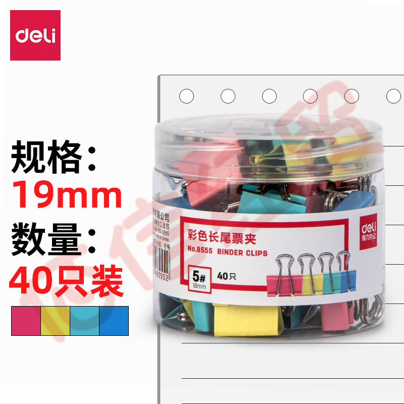 得力(deli)40只19mm彩色長尾夾票夾 5#金屬燕尾夾票據(jù)夾子文件夾 辦公用品 8555 自營