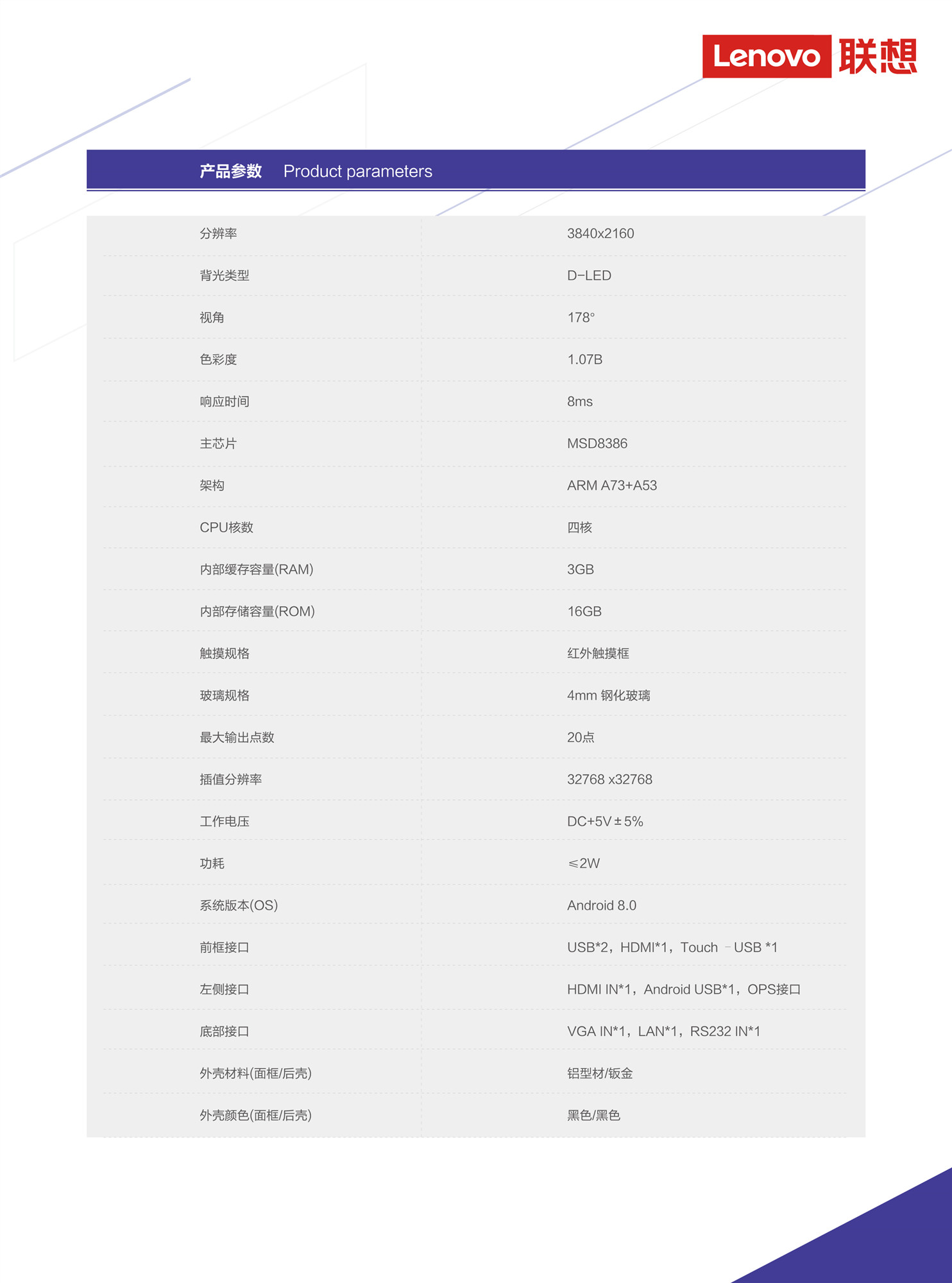 ¥50147.00聯(lián)想Lenovo會(huì)議智慧互動(dòng)大屏(紅外) LX-E86R+3