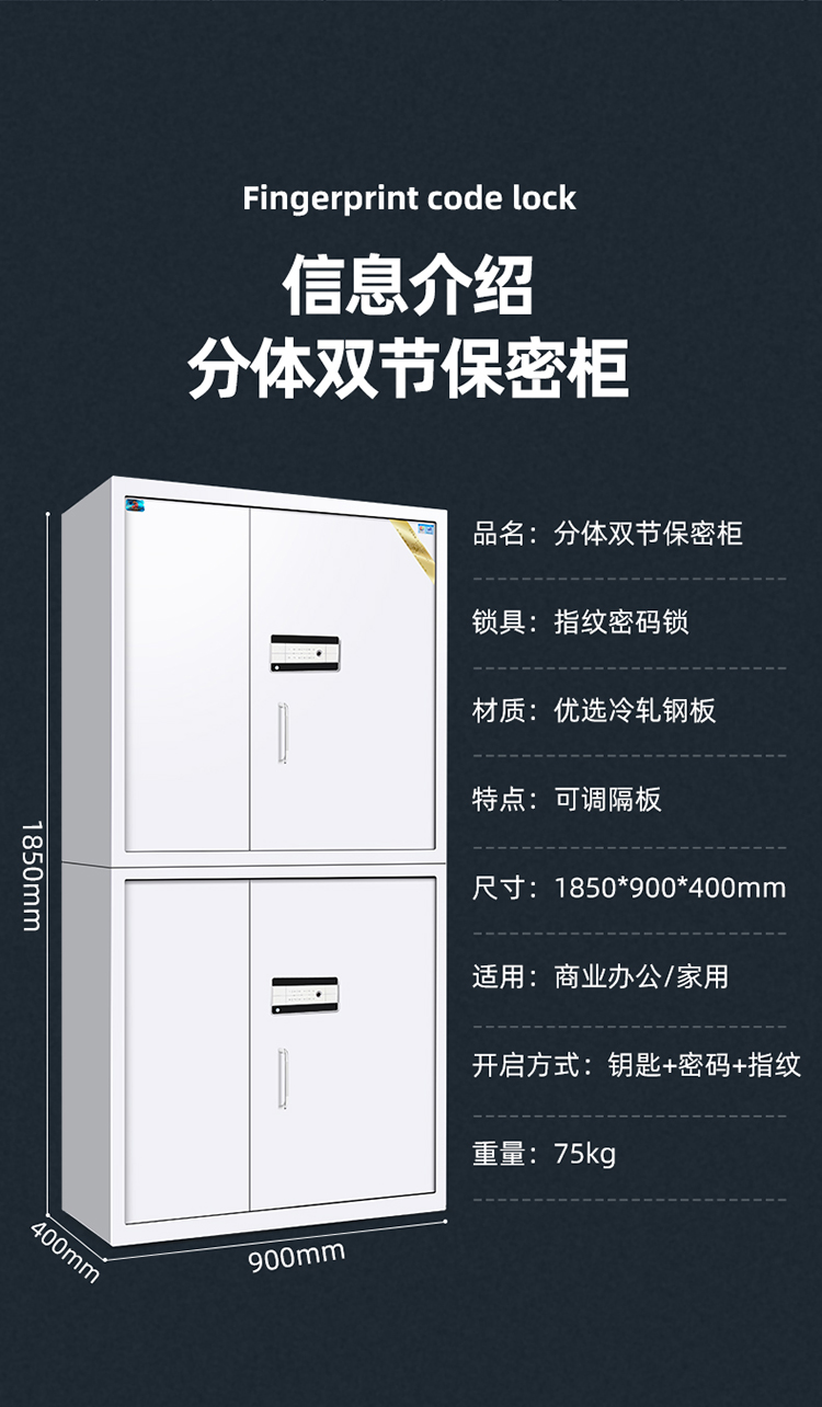 虎牌電子保密柜檔案柜資料柜加厚鋼板白色文件柜分體雙節(jié)大型指紋密碼鎖鋼制保險柜辦公柜文件柜1850*900*400 自營