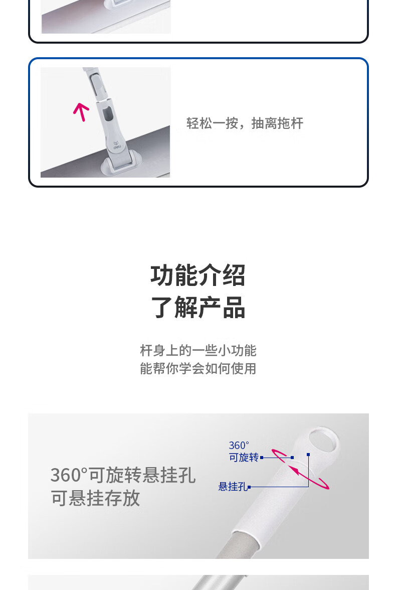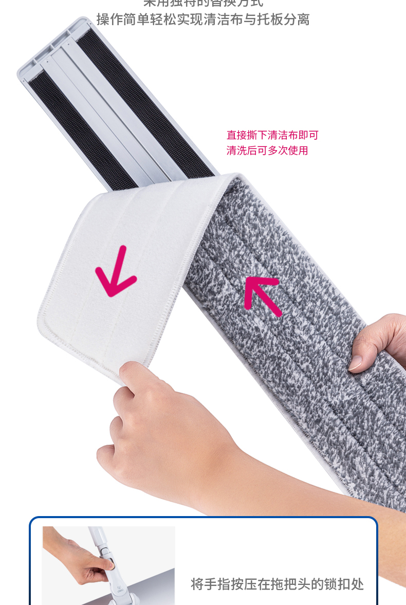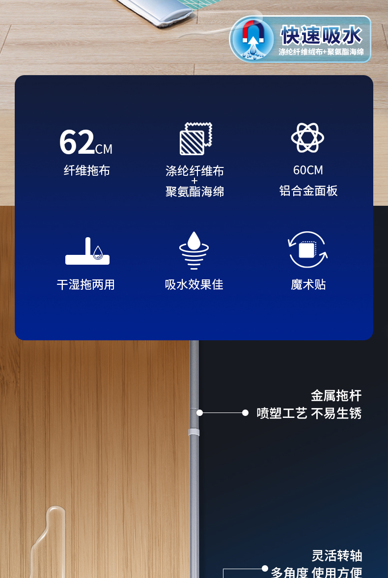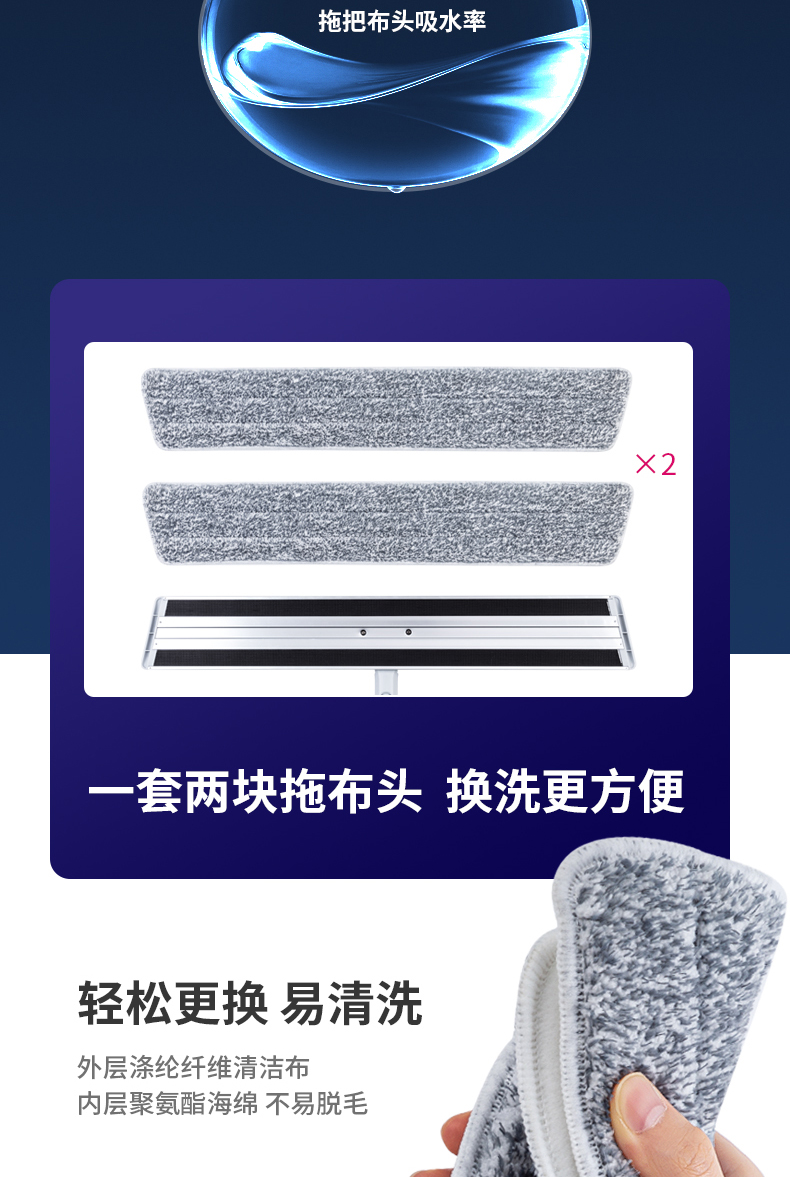 得力(deli)60cm平板拖把 高質(zhì)感鋁合金面板 魔術(shù)貼拖布設(shè)計易更換 拖布干濕兩用快速吸水 2塊拖布 19505 自營
