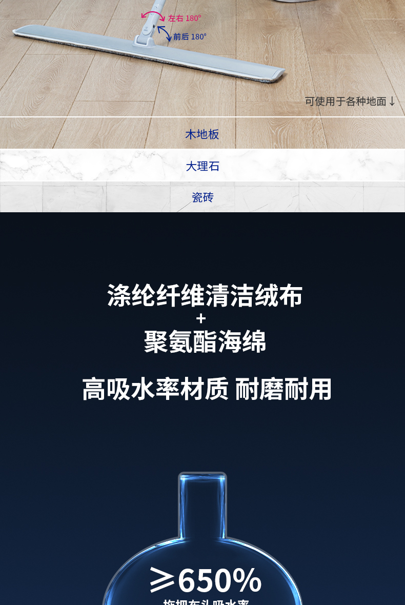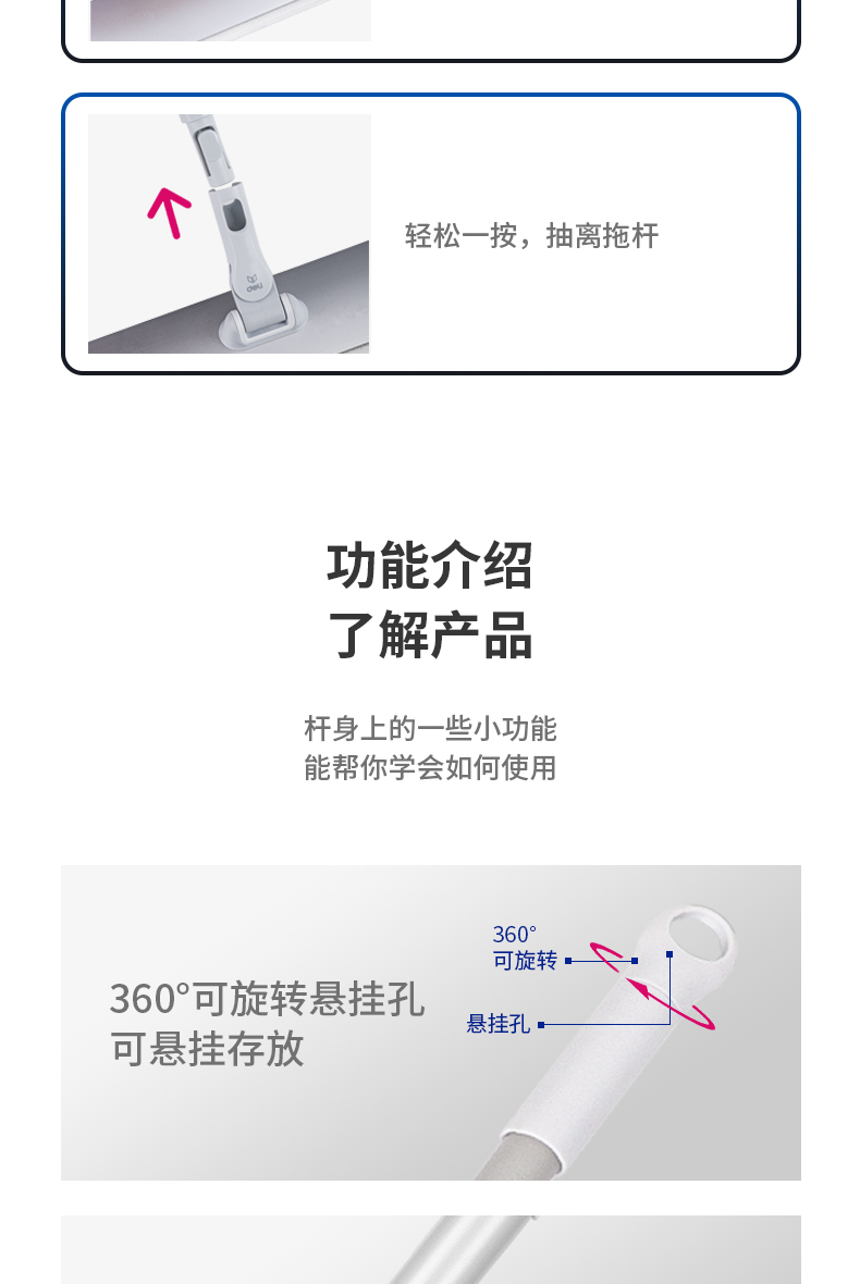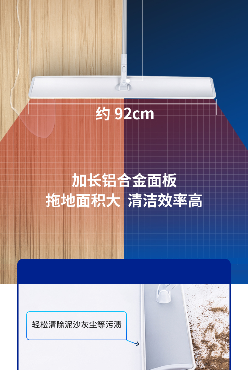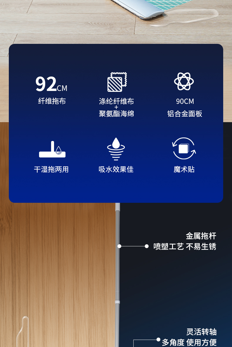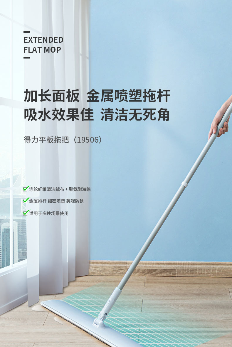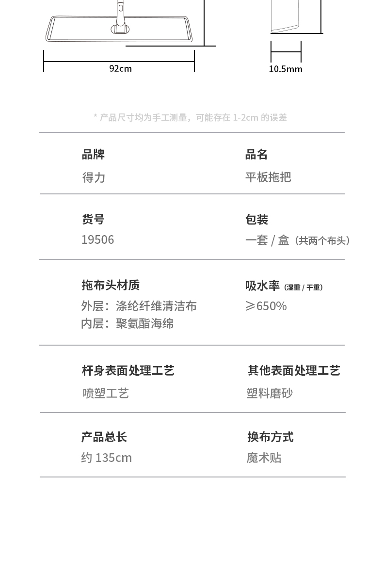 得力(deli)90cm平板拖把 高質(zhì)感鋁合金面板 魔術(shù)貼拖布設(shè)計(jì)易更換 拖布干濕兩用快速吸水 2塊拖布 19506 自營(yíng)