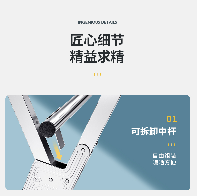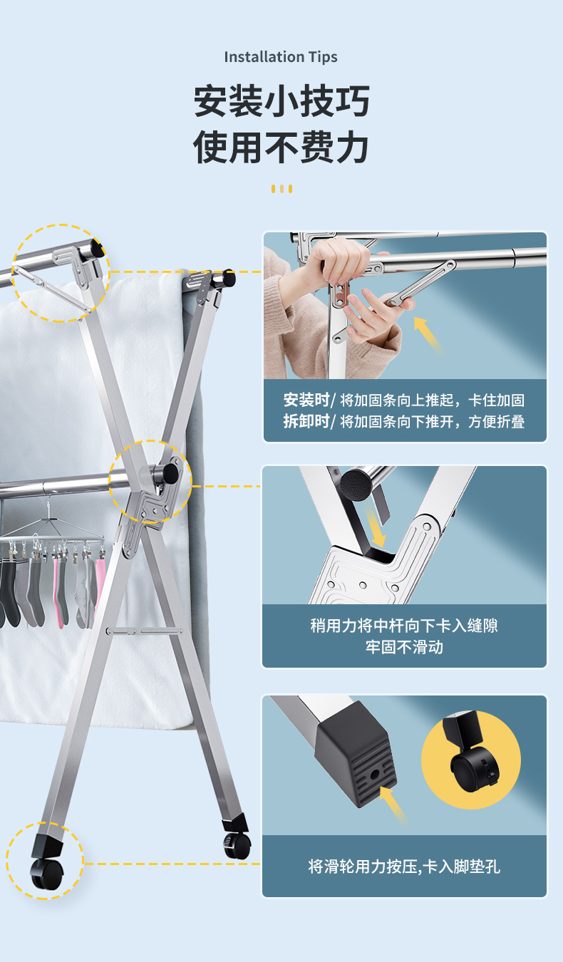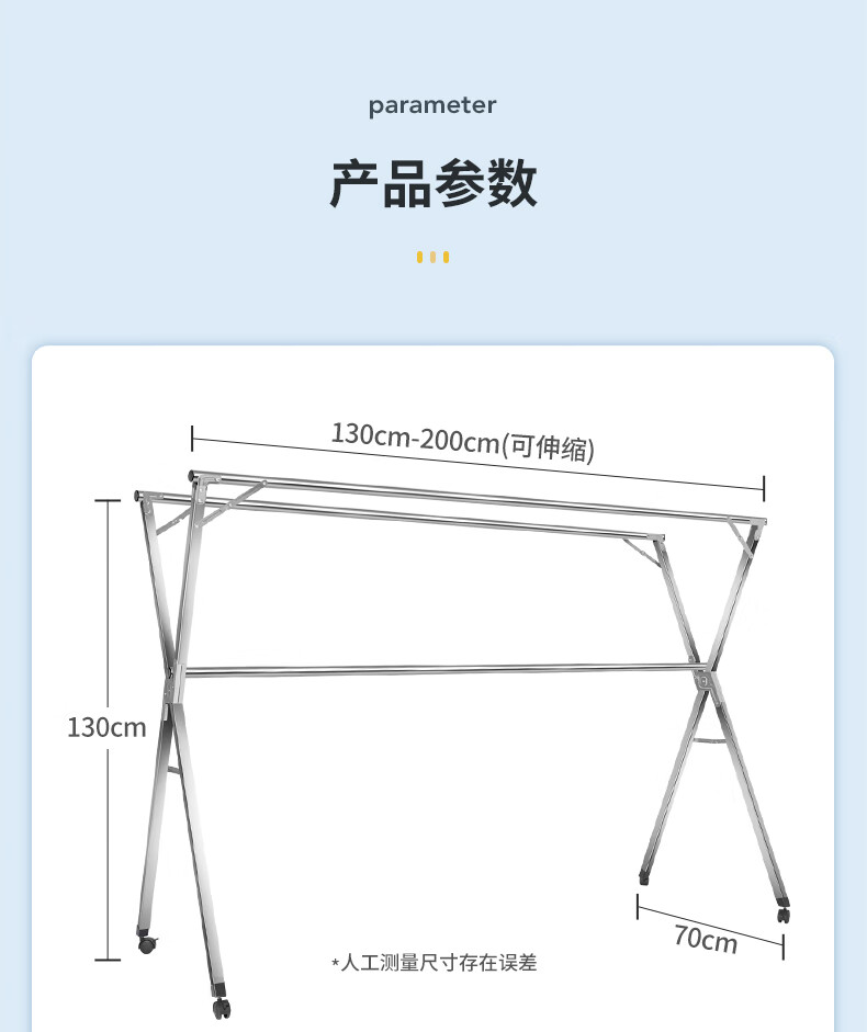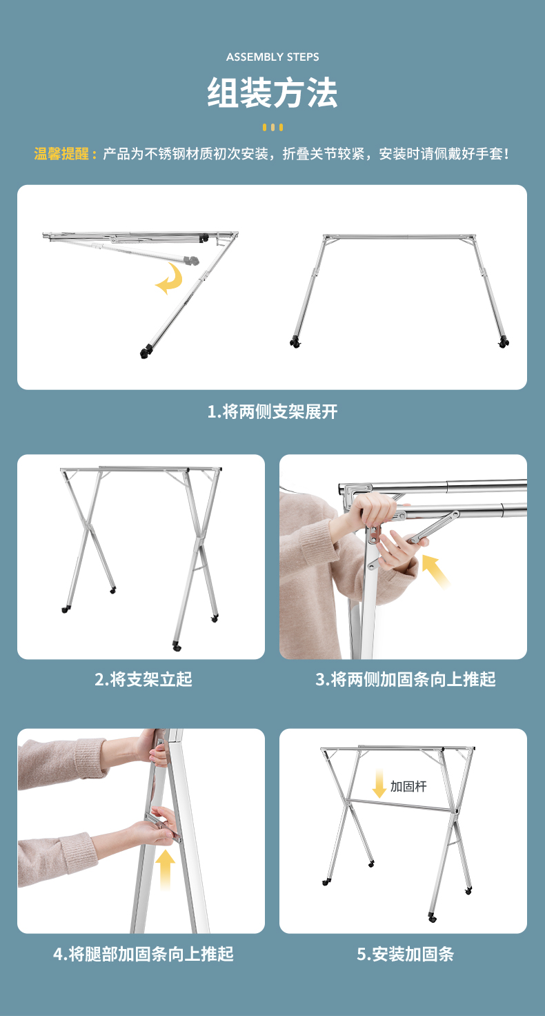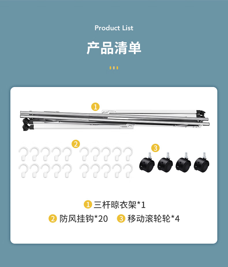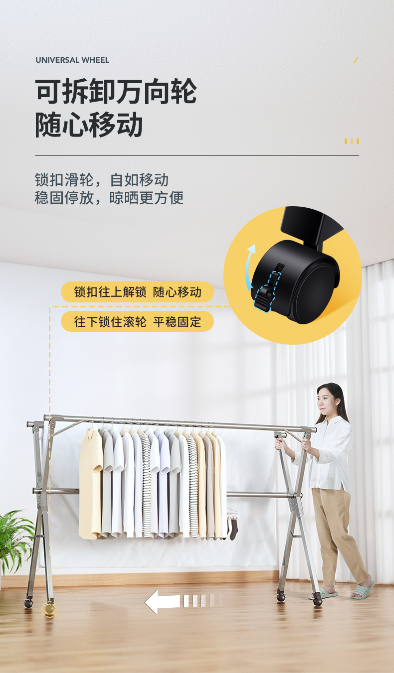美麗雅 落地晾衣架 衣架 三桿不銹鋼可折疊晾衣桿掛衣架陽臺落地衣架曬架室內(nèi)外2米可伸縮免安裝帶滑輪 自營