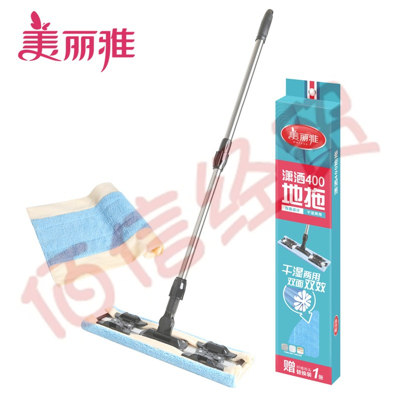 美麗雅 經(jīng)典平板拖把夾布地拖 干濕兩用木地板墩布 共2張拖把替換布