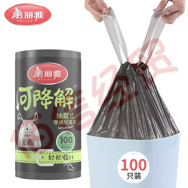 美麗雅 可降解加厚型物業(yè)商用垃圾袋 黑色環(huán)保塑料袋 100X110cm【厚1.6絲50只裝】(5個起售)