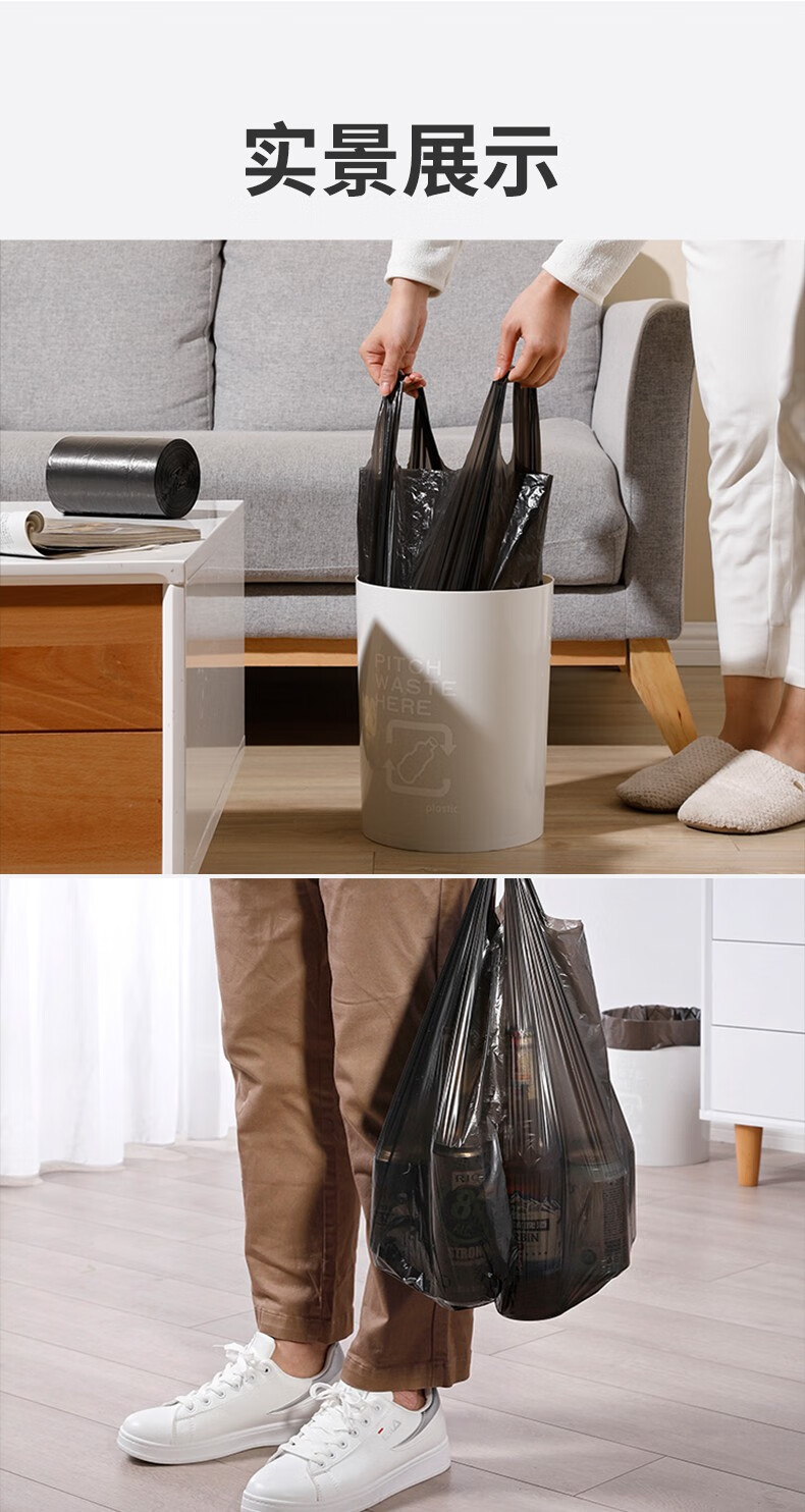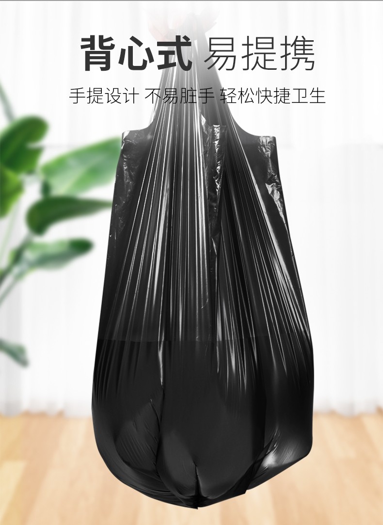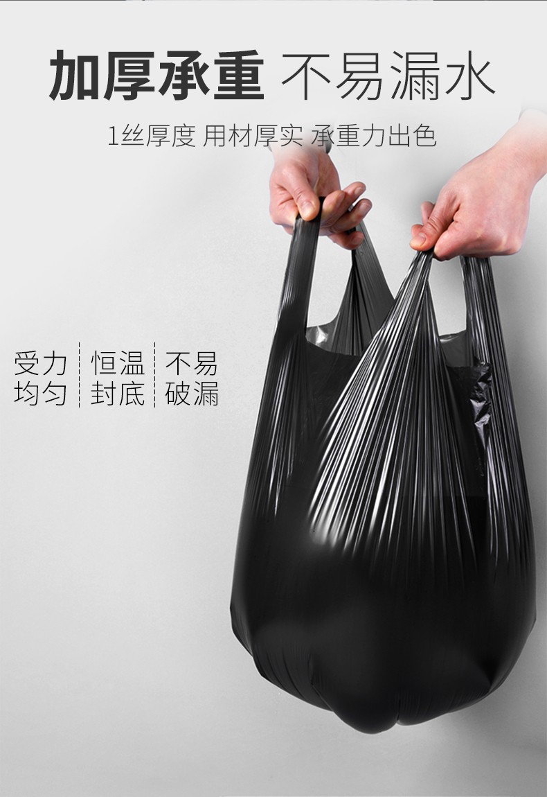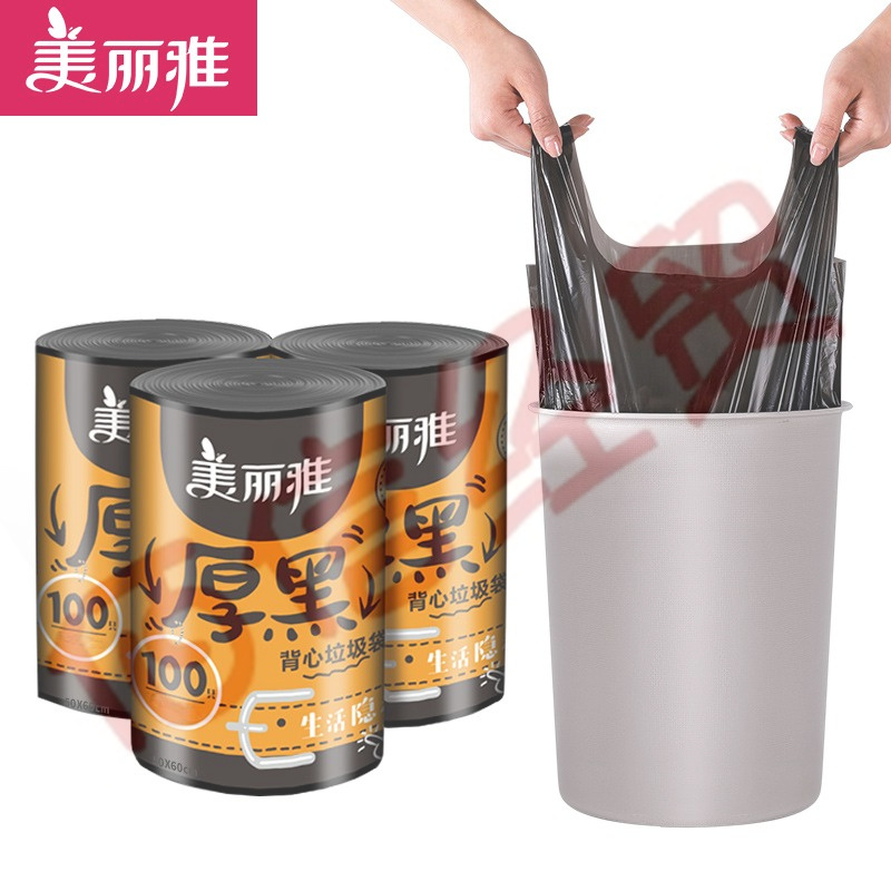 美麗雅(MARYYA)厚黑垃圾袋加厚加一次性手提垃圾袋家用塑料袋 背心式45*55cm【100只】(10個起售) 自營
