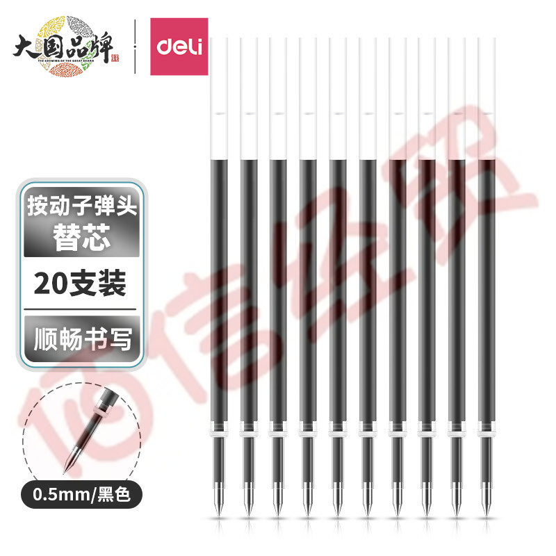 得力(deli)0.5mm按動(dòng)中性筆芯 水筆簽字筆替芯 子彈頭20支/盒黑色6906 辦公用品 自營(yíng)