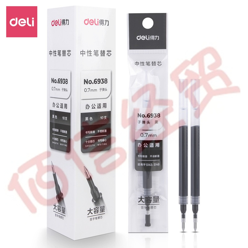 得力S755大容量中性筆芯0.5mm子彈頭(黑)10支 大容量中性筆芯子彈頭中性筆芯辦公財務碳素筆替芯簽字 自營