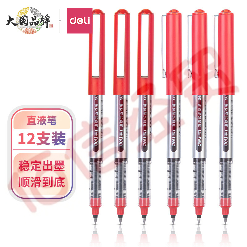 得力(deli)直液筆中性筆 0.5mm子彈頭簽字筆學(xué)生考試筆走珠筆水筆 紅色 辦公用品12支/盒S656 自營(yíng)