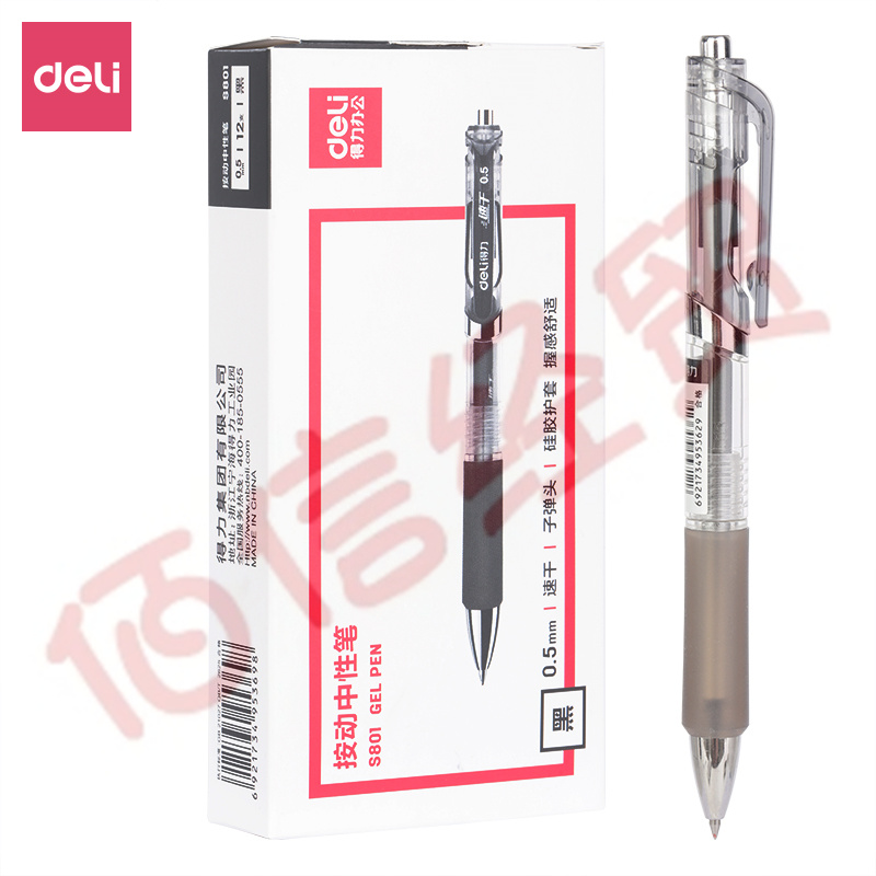得力(deli)速干中性筆 0.5mm子彈頭學(xué)生辦公簽字筆 按動(dòng)筆水筆 黑色 12支/盒 SG-S801 自營
