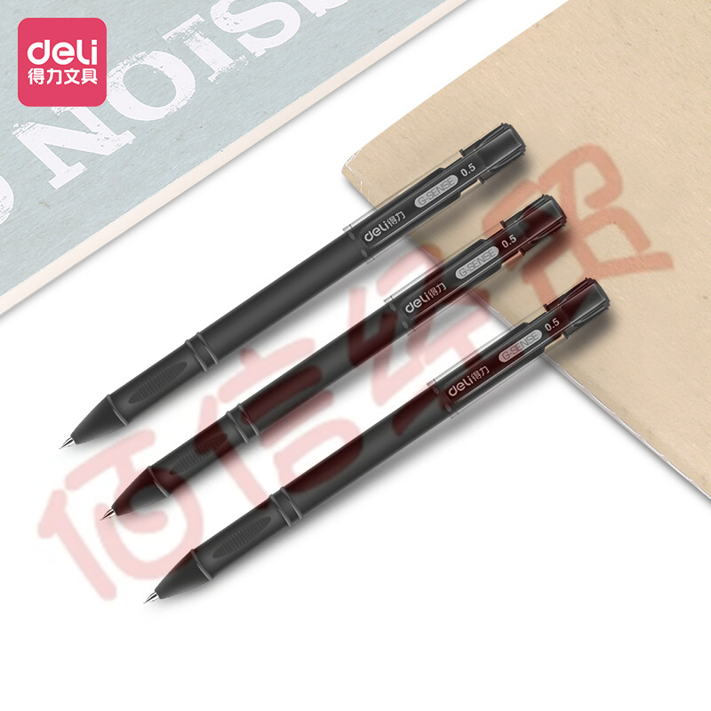 得力(deli)0.5mm黑色中性筆水筆簽字筆 辦公用品 子彈頭磨砂桿12支/盒DL-S65 自營