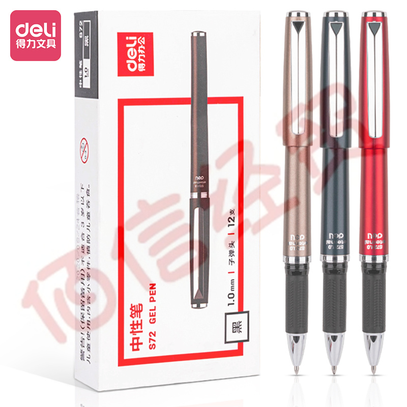 得力(deli)中性筆簽字筆 1.0mm子彈頭辦公水筆 加粗線(xiàn)幅水筆 黑色12支/盒S72 自營(yíng)