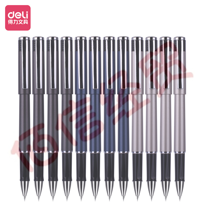 得力(deli)大容量辦公中性筆 簽字筆12支 0.5mm子彈頭黑色 自營(yíng)