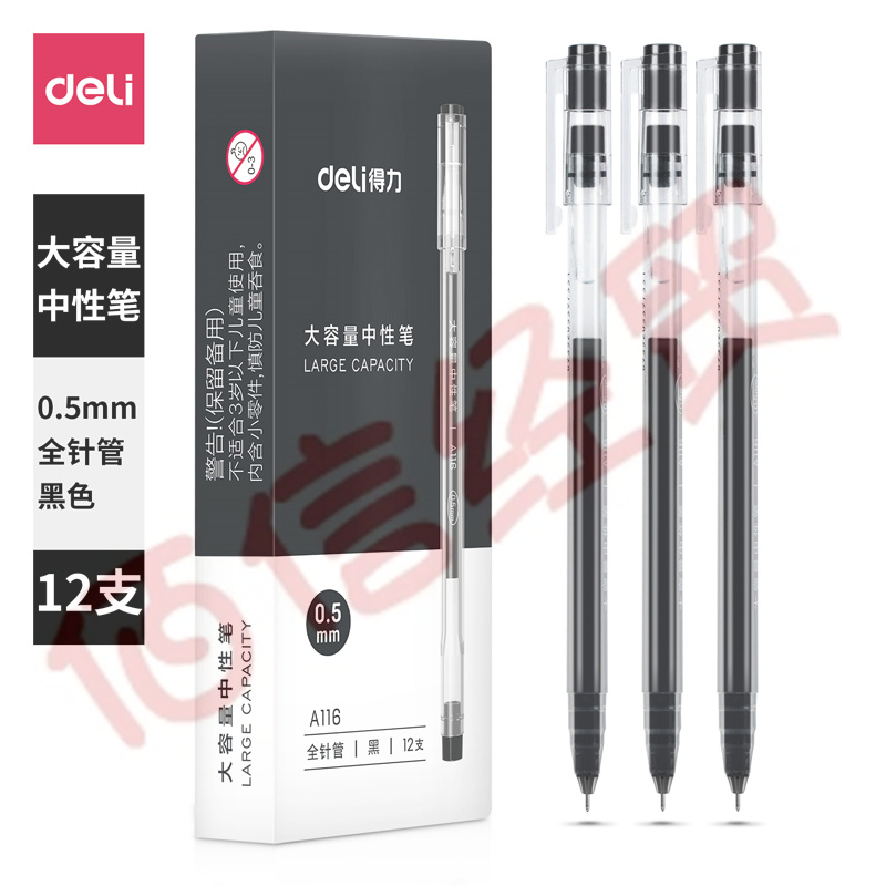 得力(deli)大容量全針管中性筆簽字筆 筆芯筆身一體化0.5mm黑色12支/盒DL-A116 學(xué)生用品 自營(yíng)