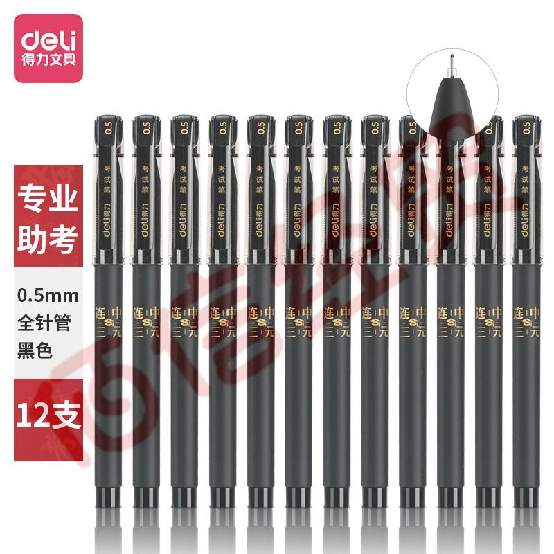 得力(deli)連中三元考試中性筆簽字水筆 0.5mm全針管黑色12支/盒S66 自營