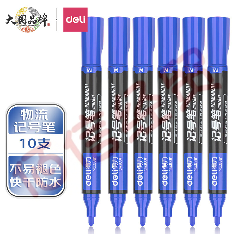 得力(deli)藍色粗頭物流油性記號筆大頭筆 10支/盒6881 辦公用品 自營