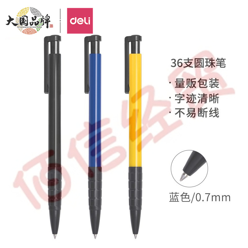 得力(deli)圓珠筆中油筆 0.7mm子彈頭軟膠握手原子筆按動筆 辦公用品 藍(lán)色 36支/盒 6546 自營