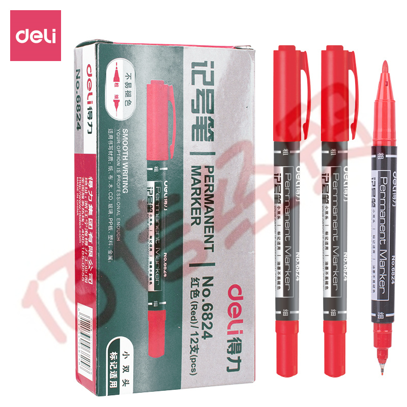 得力(deli)紅色粗頭物流油性記號(hào)筆大頭筆 10支/盒6881 辦公用品