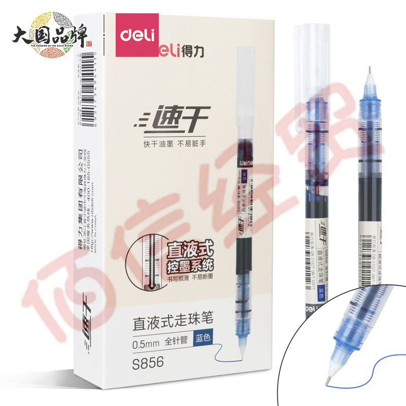 得力(deli)直液筆走珠簽字筆 學生辦公中性筆 ins無印簡約風 0.5mm全針管12支/盒S856藍 自營