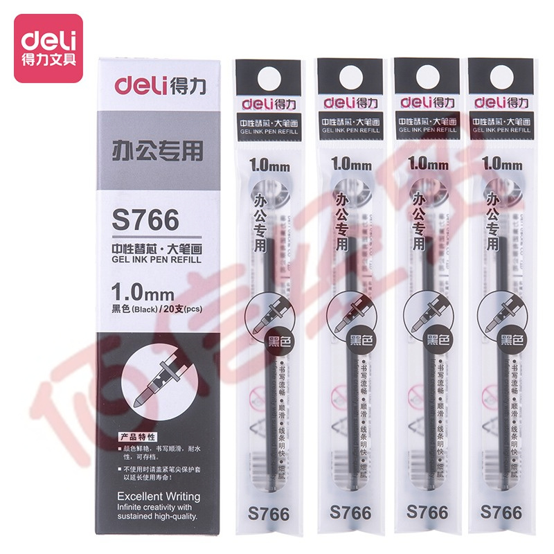 得力(deli)1.0mm黑色中性筆簽字筆替芯 子彈頭20支/盒 自營(yíng)