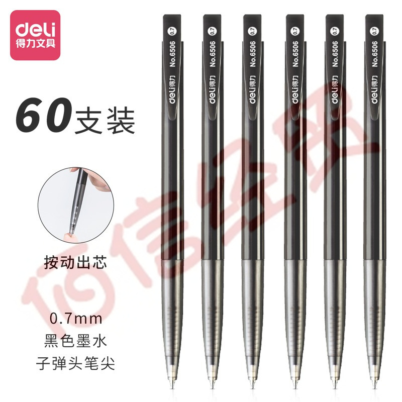得力(deli)圓珠筆中油筆 0.7mm子彈頭按動筆原子筆 辦公用品 黑色 60支/盒 6506 自營