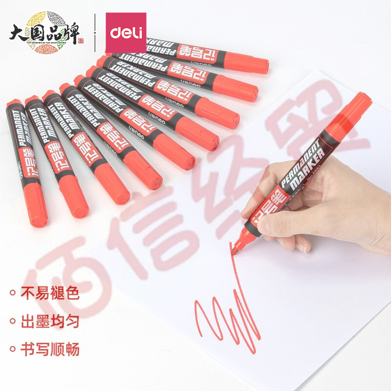 得力(deli)紅色粗頭物流油性記號(hào)筆大頭筆 10支/盒6881 辦公用品 自營(yíng)