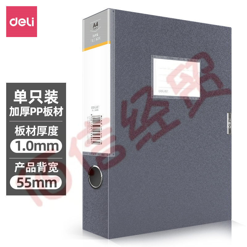 ¥50.40得力(deli)1只-55mm-A4塑料文件盒檔案盒 加厚資料盒 財(cái)務(wù)憑證考試收納 5683