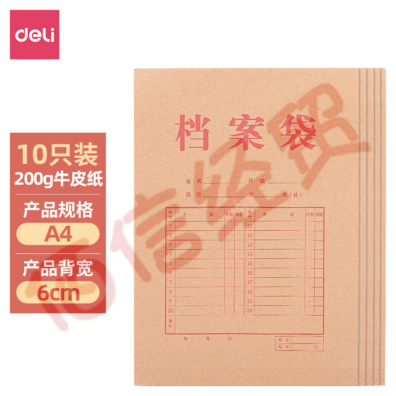 得力(deli)-10只-A4-混漿200g牛皮紙檔案袋 側(cè)寬6cm標書合同文件資料袋票據(jù)收納袋64101 自營