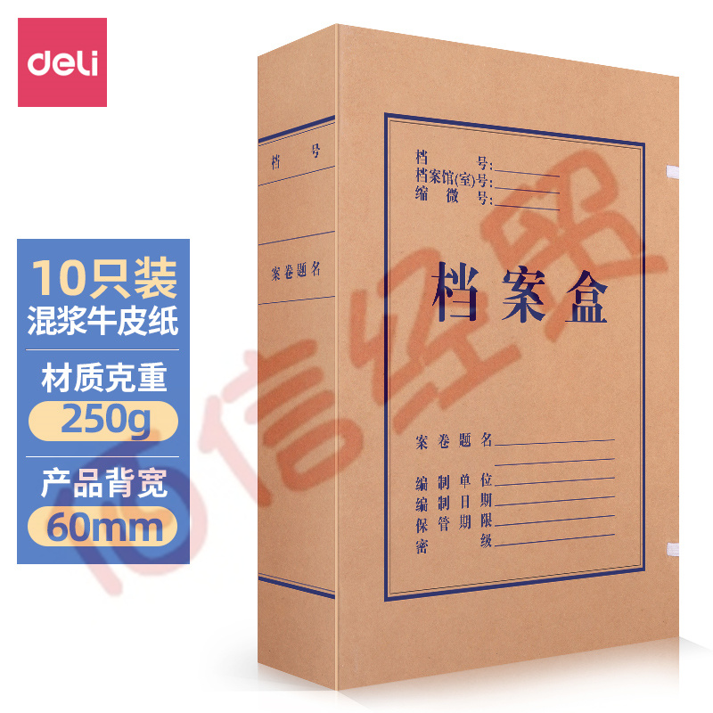 得力(deli)10只60mm混漿250g牛皮紙文件盒 檔案盒 加厚財會檔案盒資料盒 考試收納5620 自營