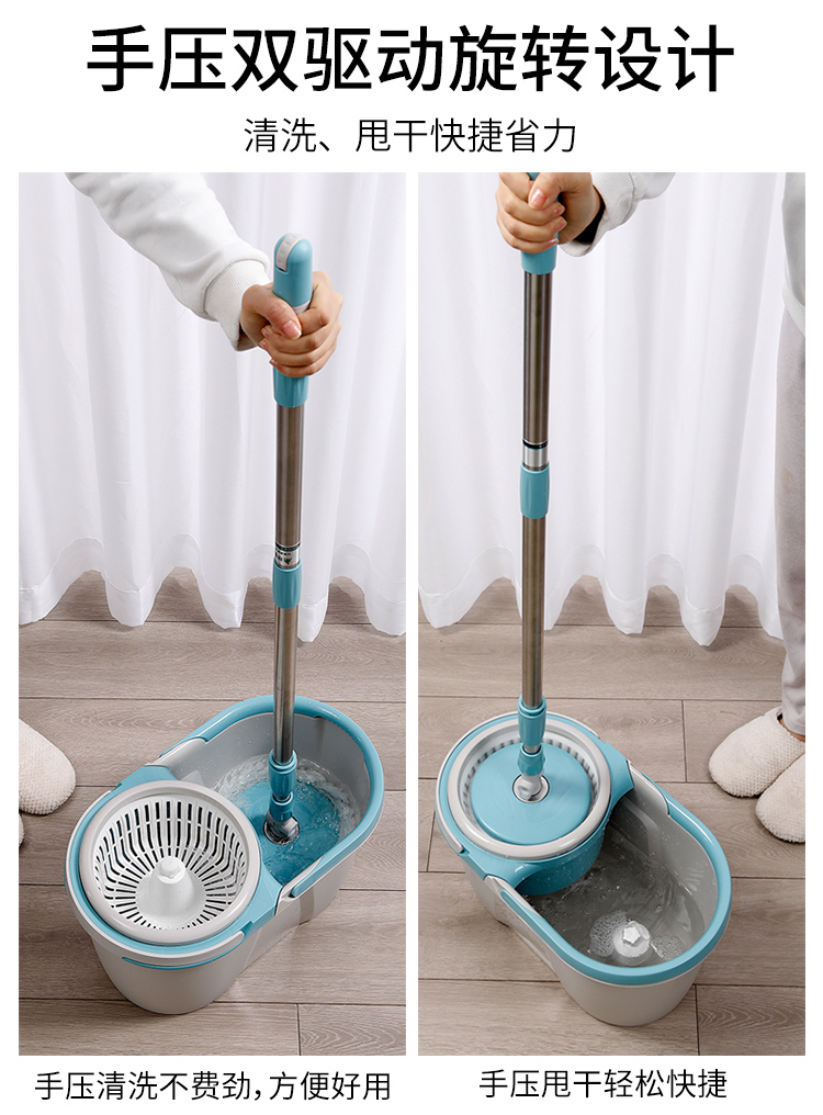 美麗雅 旋轉(zhuǎn)拖把免手洗懶人拖把桶拖地吸水墩布拖布家用地拖干濕兩用木地板拖把 共2拖布 自營(yíng)