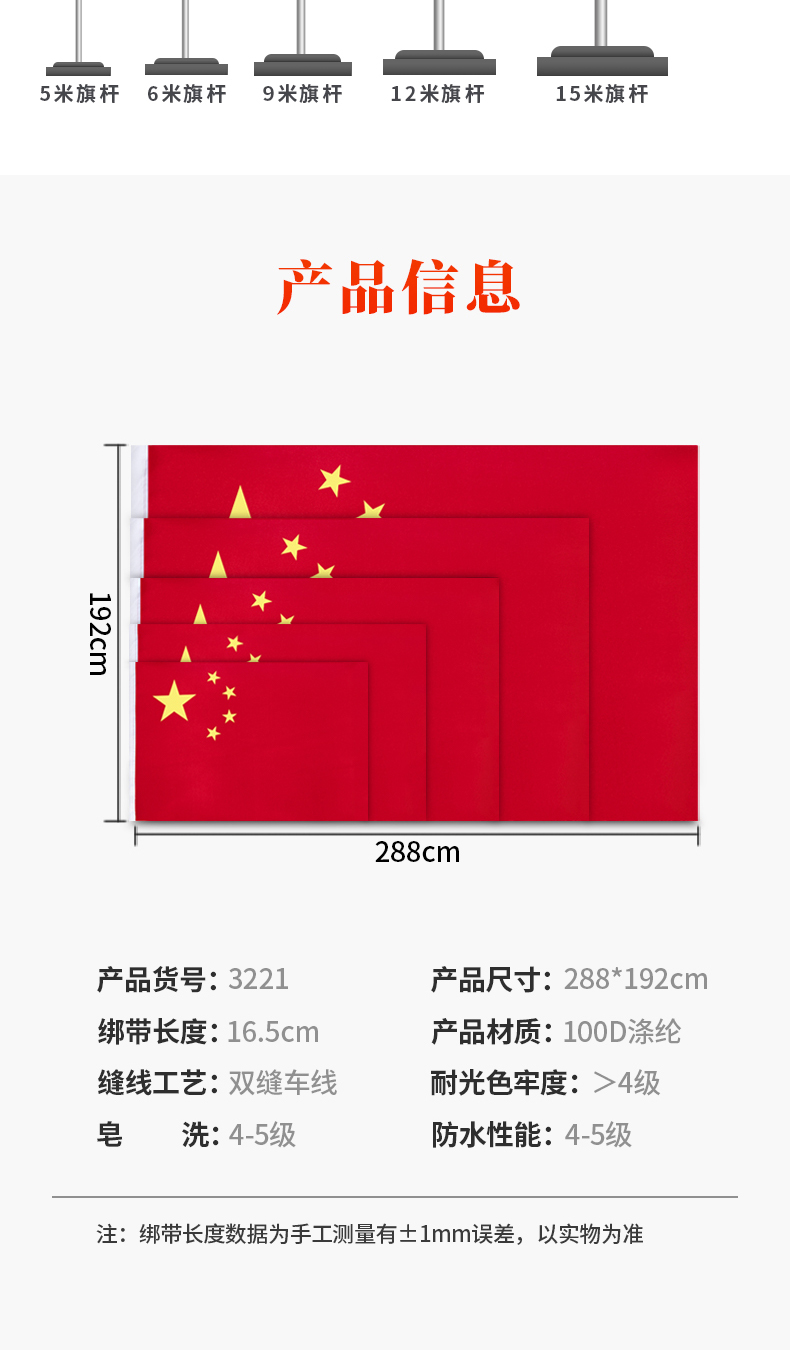 得力(deli)1號國旗/五星紅旗(192*288cm) 3221 自營