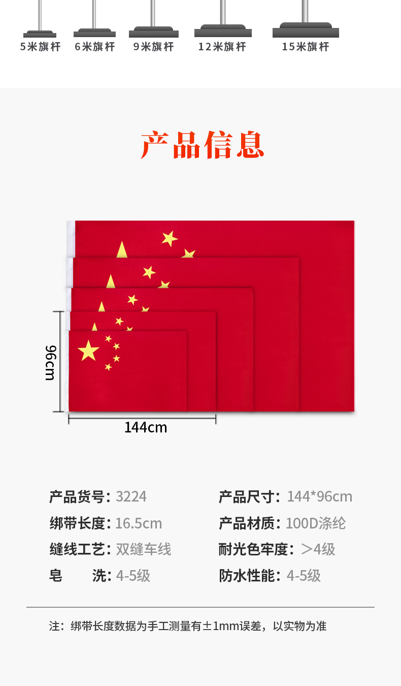 得力(deli)4號(hào)國旗/五星紅旗(96*144cm) 3224 自營