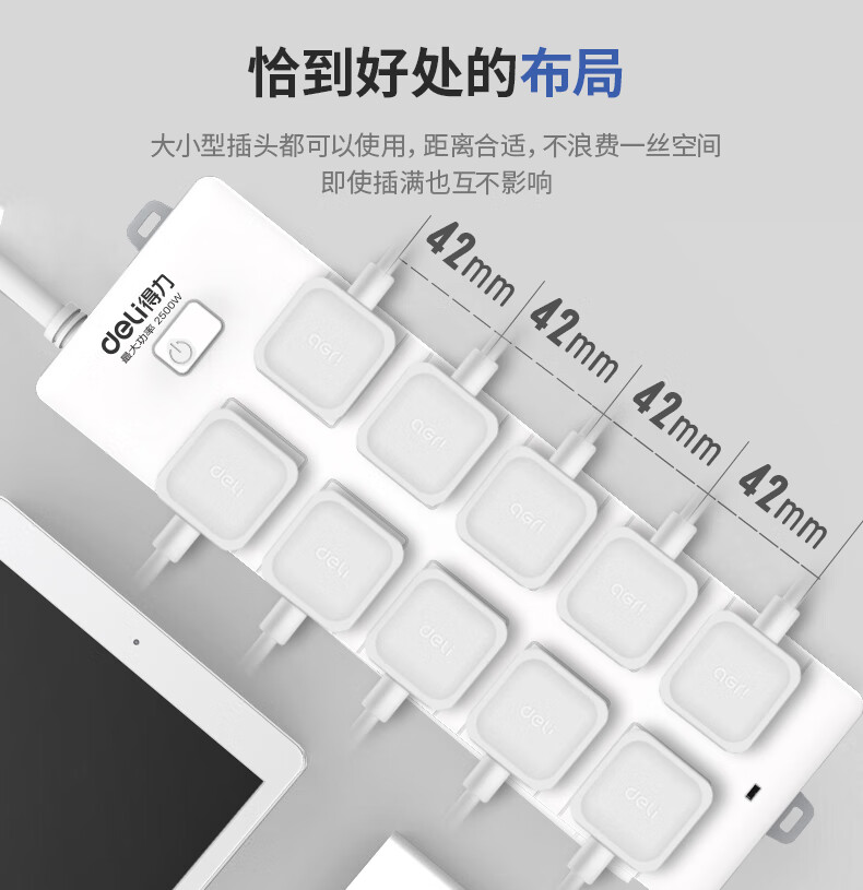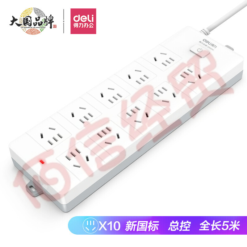 得力(deli)新國標(biāo)安全插座--10組合孔5米 18275-05 自營