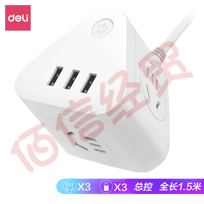 得力(deli)三角魔方插座 智能USB插座 插排/插線板/接線板/排插 3USB接口+3組合孔 總控 全長1.5米 18321 自營