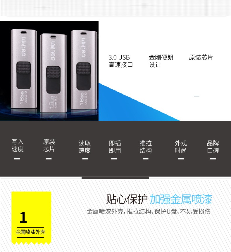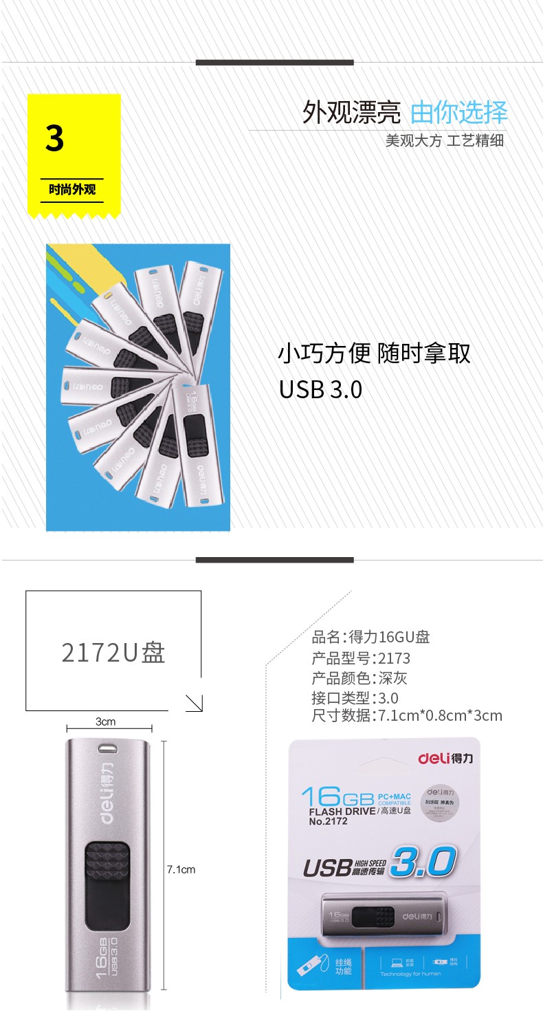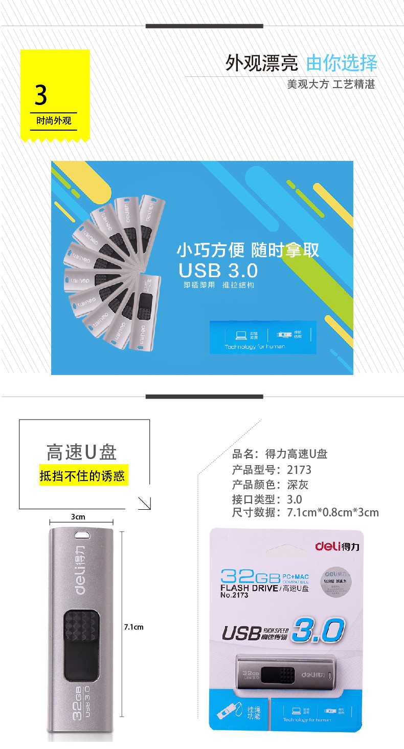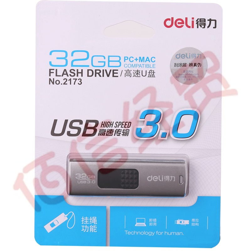得力(deli) 推拉式U盤 USB高速3.0 2173(32GB) 自營(yíng)
