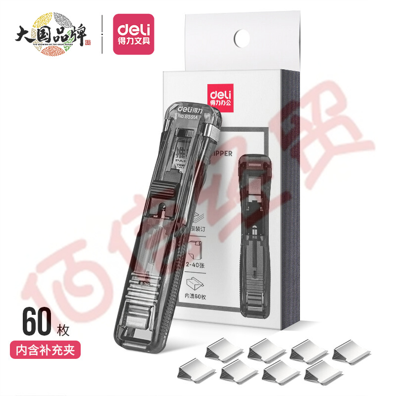 得力(deli)-推夾器套裝(推夾器+60枚補(bǔ)充夾) 可夾紙張數(shù)40張 透明黑33183 自營(yíng)