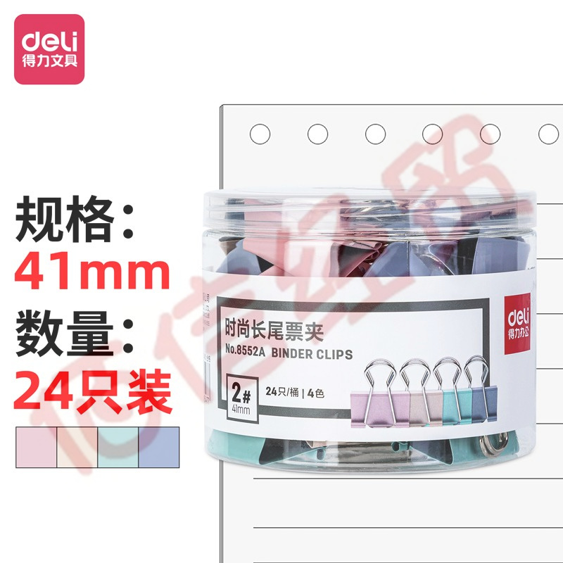 得力(deli) 長(zhǎng)尾夾 8552A混色/24只(41mm) 自營(yíng)