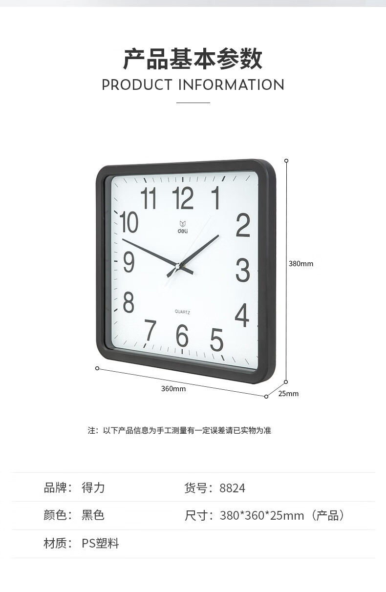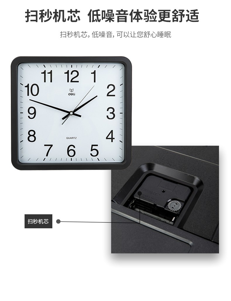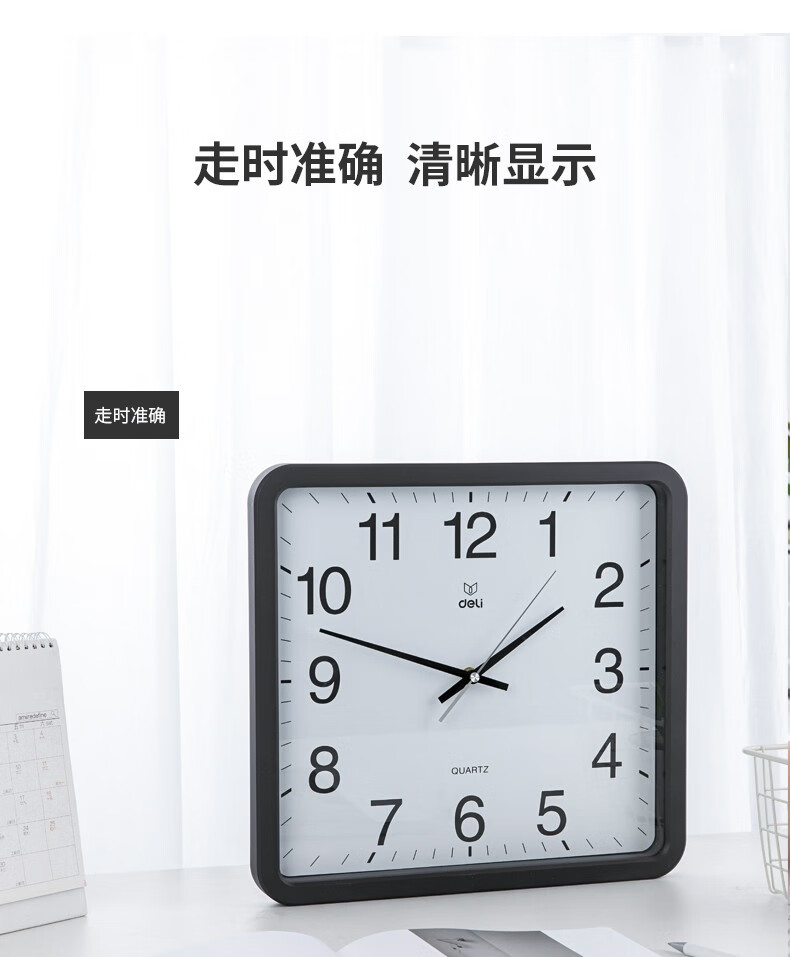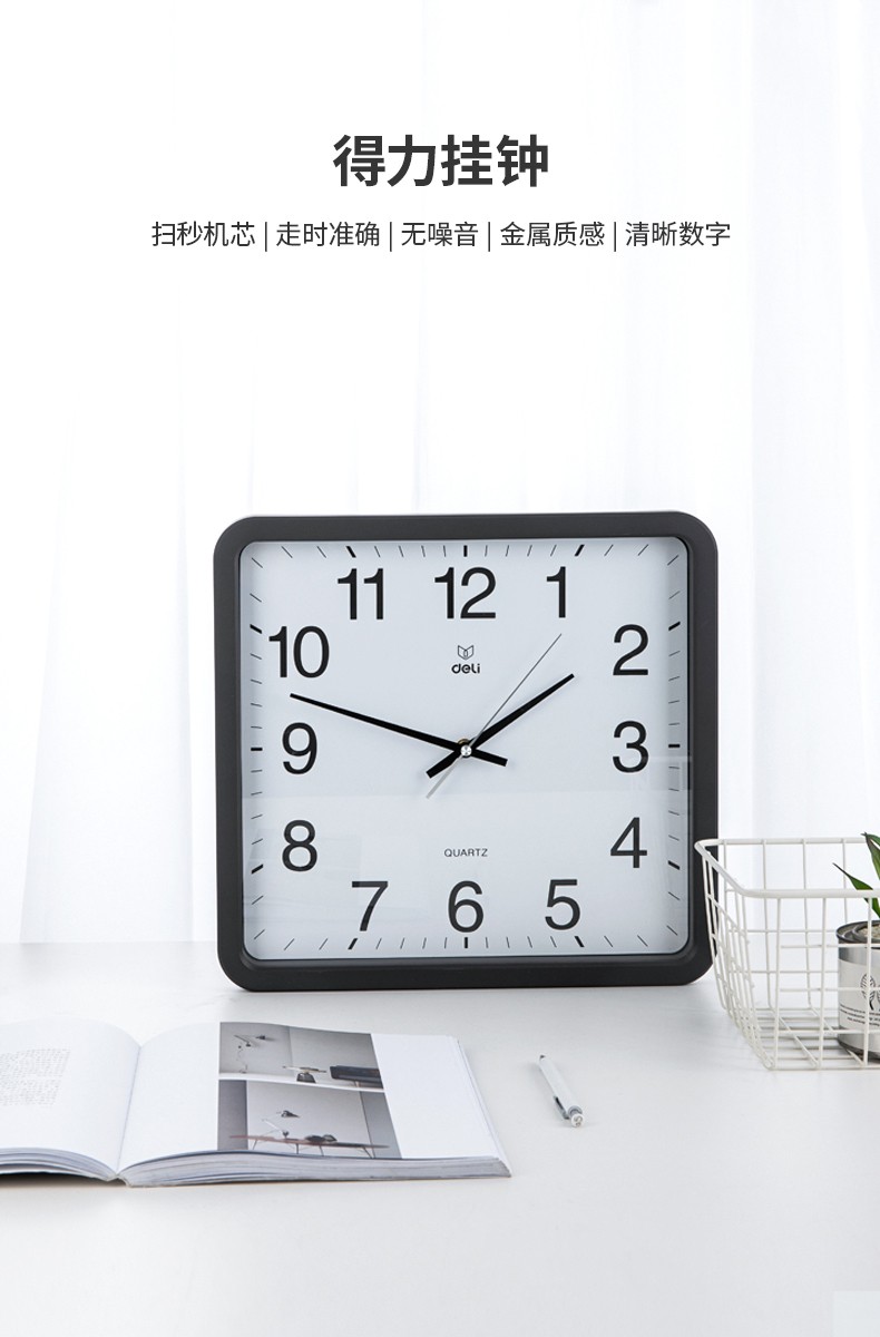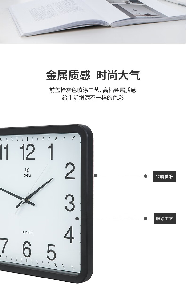 得力(deli)8832 鐘表掛鐘方形創(chuàng)意時(shí)鐘掛表電子石英鐘