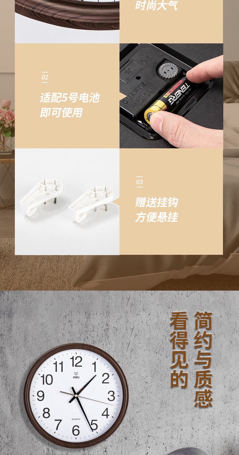 得力(deli)8842 木紋掛鐘客廳鐘表簡(jiǎn)約創(chuàng)意時(shí)鐘時(shí)尚石英鐘現(xiàn)代辦公室掛表 12英寸【直徑30cm】