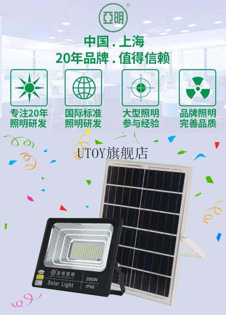 2022新款亞明太陽(yáng)能燈 上海太陽(yáng)能超亮戶外防水w200w室外新農(nóng)村LED投光照明路燈 亞明太陽(yáng)能200w光控+遙控 自營(yíng)