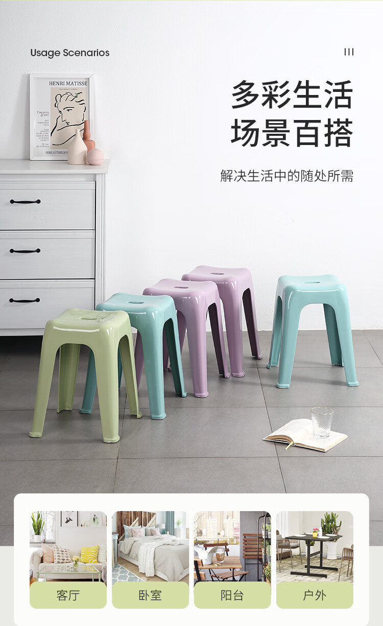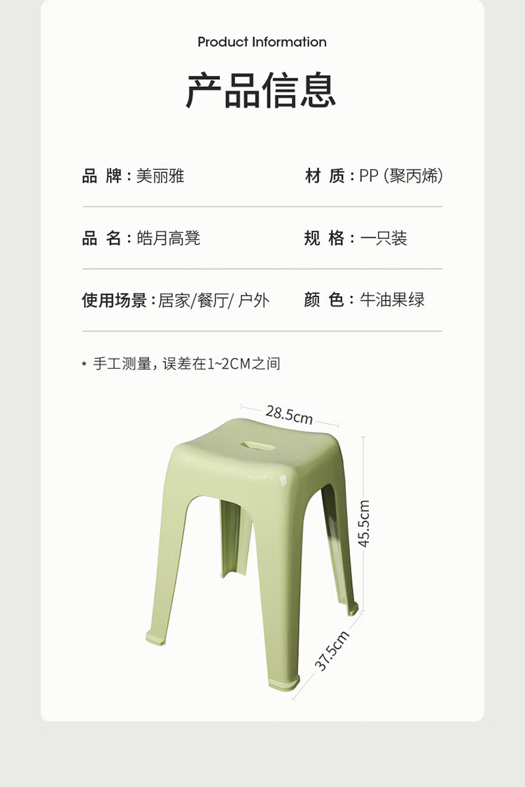 美麗雅 塑料高凳子加厚 客廳餐桌家用方形板凳 現(xiàn)代簡(jiǎn)約梳妝臺(tái)化妝便攜式膠凳 1只(5個(gè)起售) 自營(yíng)
