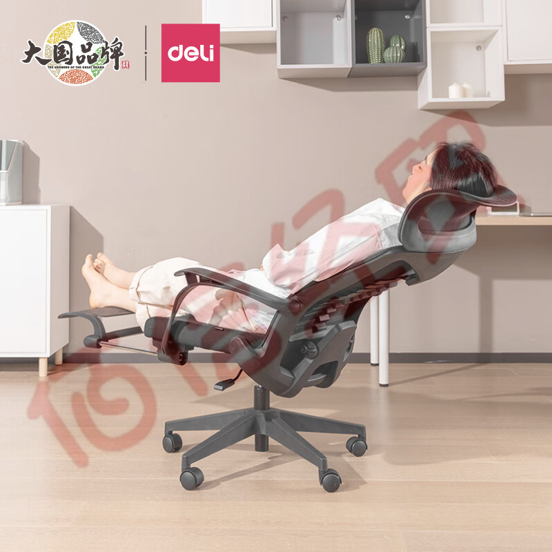 ¥872.00得力(deli)可躺辦公椅160°大角度躺平椅 人體工學(xué)電腦椅 舒適午休椅 午睡椅 帶腳托 91019