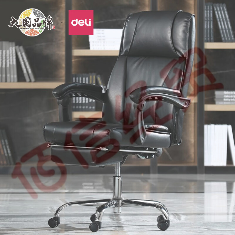 得力 deli 生態(tài)皮老板椅 帶腳托大角度可躺辦公椅 人體工學(xué)電腦椅 87088 黑色