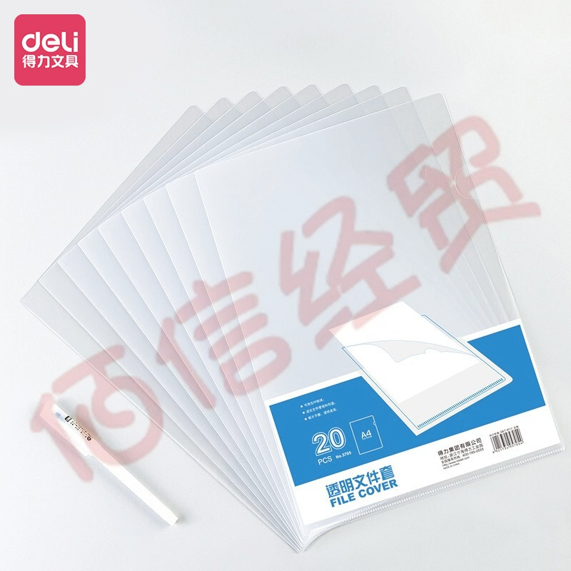 得力(deli)5705 A4透明文件套 L型文件夾 單片兩頁式文件袋 文件快遞袋 20只/包裝 自營