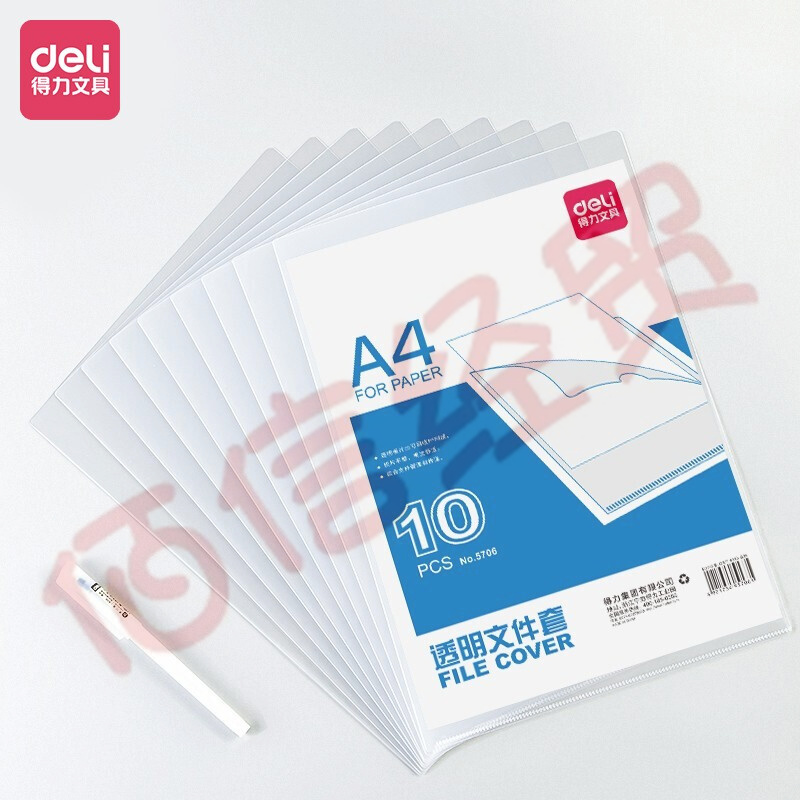 得力(deli)10只A4透明文件套 L型文件袋 單片兩頁式文件夾 票據(jù)收納 文件快遞袋5706 自營