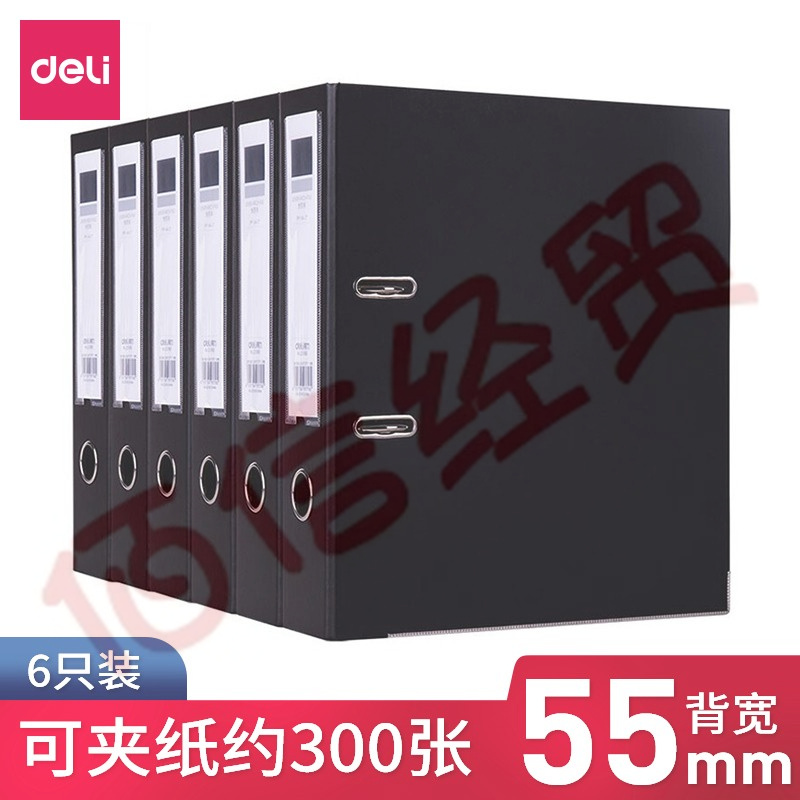得力(deli) 5480 加厚型快勞夾/文件夾 A4兩孔活頁夾打孔夾 寬55mm 辦公用品 黑色-背寬2英寸/6個裝 自營