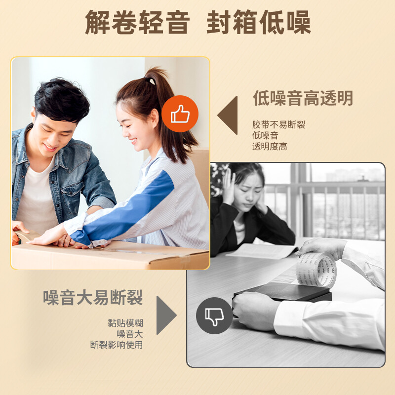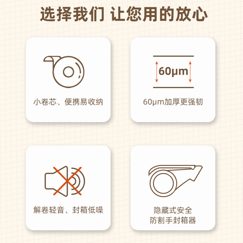 得力(deli) 小卷芯封箱膠帶/打包膠帶/家庭低噪膠帶 48mm*40m*60μm 1卷裝 帶切割器 30040透明 自營(yíng)