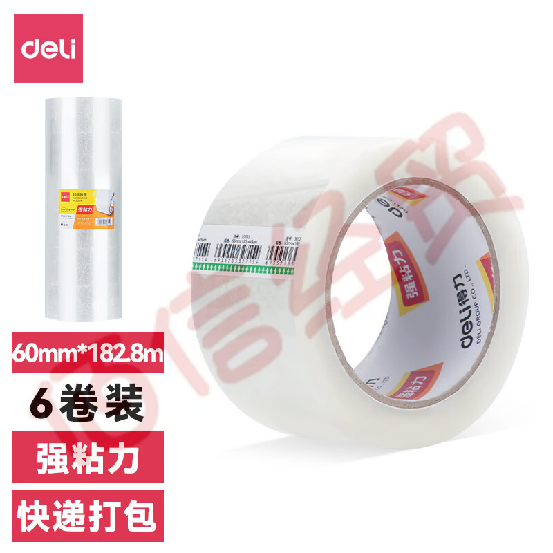 得力(deli)高品質(zhì)透明封箱膠帶/打包膠帶 60mm*200y*45um(6卷/筒)(普透)30335 自營(yíng)